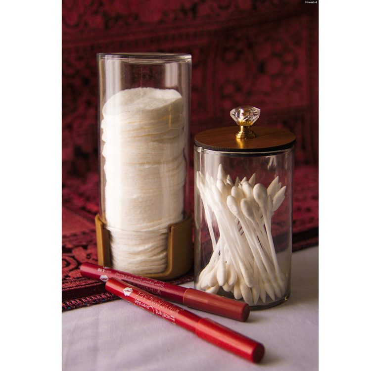 سایر مشخصاتجنس محفظه شیشه ای و جنس پایه نگهدارنده پد از پلاستیک و جنس درب محفظه گوش پاک کن از چوب و دستگیره کریستالی