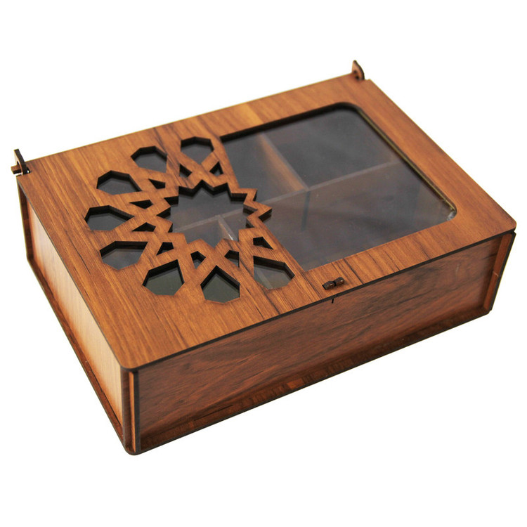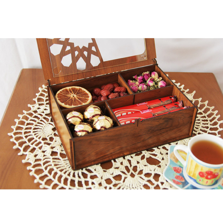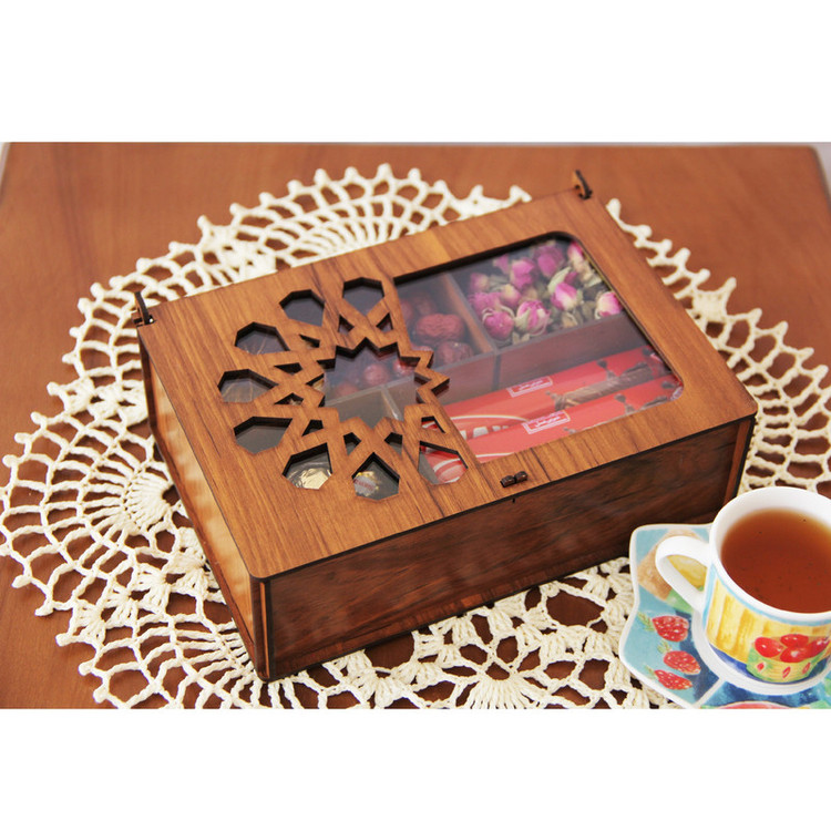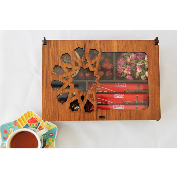 جعبه پذیرایی هیواد مدل HD14 محصول جدید گروه تولیدی هیواد در دسته ظروف سرو و پذیرایی است. این جعبه دارای درب شفاف می باشد که باعث می شود اقلام موجود در جعبه نمایان باشد. همچنین این درب دارای قفل چوبی نیز می باشد.این محصول دارای 4 قسمت می باشد که قابل تبدیل به دو یا سه قسمت دارد بدین صورت که دو قطعه چوبی که موازی با عرض جعبه است قابلیت برداشته شدن را دارد. سایز این جعبه بسیار مناسب برای میز پذیرایی میز محل کار و ....می باشد. در هنگام خرید محصول حتما به آرم و لوگوی هیواد توجه فرمایید.
