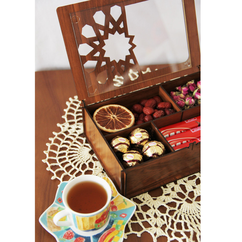 جعبه پذیرایی هیواد مدل HD14 محصول جدید گروه تولیدی هیواد در دسته ظروف سرو و پذیرایی است. این جعبه دارای درب شفاف می باشد که باعث می شود اقلام موجود در جعبه نمایان باشد. همچنین این درب دارای قفل چوبی نیز می باشد.این محصول دارای 4 قسمت می باشد که قابل تبدیل به دو یا سه قسمت دارد بدین صورت که دو قطعه چوبی که موازی با عرض جعبه است قابلیت برداشته شدن را دارد. سایز این جعبه بسیار مناسب برای میز پذیرایی میز محل کار و ....می باشد. در هنگام خرید محصول حتما به آرم و لوگوی هیواد توجه فرمایید.
