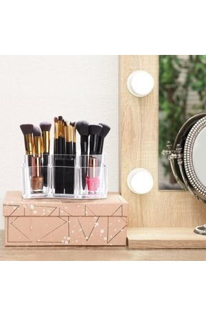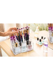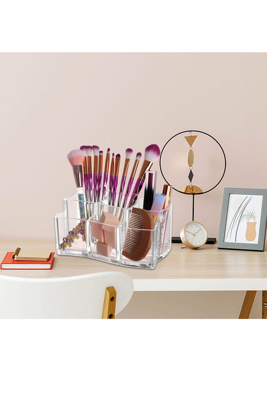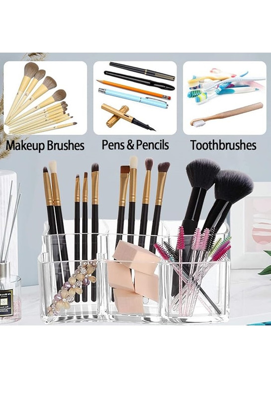 این استند لوازم آرایشی حرفه ای از مواد اکریلیک بسیار قوی تشکیل شده است که در برابر آب و هوا بسیار مقاوم است و بسیار قوی تر از شیشه است که دوام و امنیت آن را در برابر آسیب و شکستگی تضمین می کند. بسیاری از اشکال و اندازه های برس آرایش، خط لب/چشم، براق کننده، رژگونه، لوازم جانبی مو، لاک ناخن، خودکار، لوسیون، عطر، جواهرات، Q-tips و موارد دیگر را نظم می دهد. این استند لوازم آرایشی انتخاب مناسبی برای هر کسی است که می خواهد شلوغی را کاهش دهد. به لطف اکریلیک شفاف و طراحی مدرن، با سایر قسمتهای داخلی منزل شما ترکیب میشود تا ظاهر دکوراسیون شما را افزایش دهد و در عین حال به شما کمک میکند فضای خود را شلوغ کنید.
