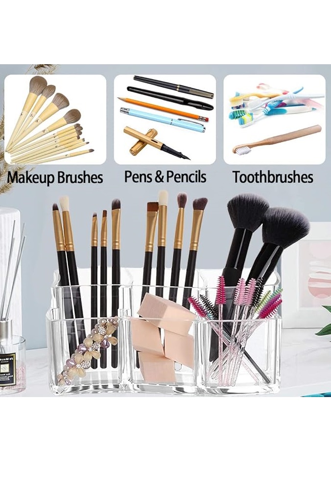 این استند لوازم آرایشی حرفه ای از مواد اکریلیک بسیار قوی تشکیل شده است که در برابر آب و هوا بسیار مقاوم است و بسیار قوی تر از شیشه است که دوام و امنیت آن را در برابر آسیب و شکستگی تضمین می کند. بسیاری از اشکال و اندازه های برس آرایش، خط لب/چشم، براق کننده، رژگونه، لوازم جانبی مو، لاک ناخن، خودکار، لوسیون، عطر، جواهرات، Q-tips و موارد دیگر را نظم می دهد. این استند لوازم آرایشی انتخاب مناسبی برای هر کسی است که می خواهد شلوغی را کاهش دهد. به لطف اکریلیک شفاف و طراحی مدرن، با سایر قسمتهای داخلی منزل شما ترکیب میشود تا ظاهر دکوراسیون شما را افزایش دهد و در عین حال به شما کمک میکند فضای خود را شلوغ کنید.